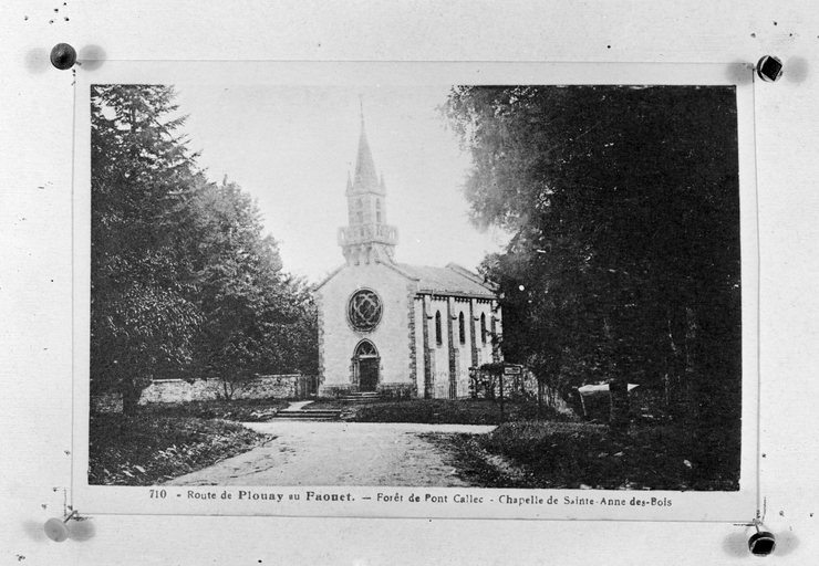 Edifice antérieur incendié en 1796 ; totalement reconstruit en 1882 ; ancienne chapelle sainte Anne du cloître reconstruite récemment au nord-ouest du château, provenant de Pluméliau ; deuxième chapelle sainte Anne des bois construite 2e moitié 19e siècle.