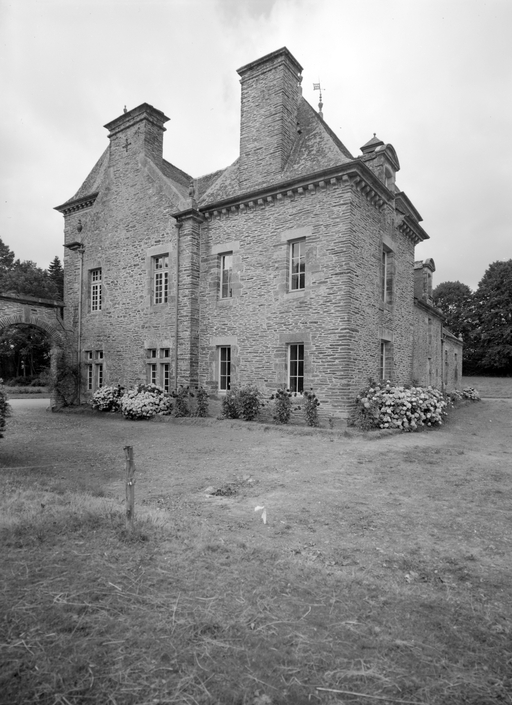 Corps principal de plan rectangulaire avec corps saillant carré sur l'élévation antérieure ; second corps carré, en pavillon, sur l'élévation postérieure, accosté d'une tourelle carrée dans-œuvre, en retrait de ce corps et dans l'alignement du corps principal. Corps central à un étage carré et un étage de comble. Maçonnerie de moellon de schiste sans chaîne en pierre de taille, encadrements de baies, porche de l'élévation antérieure, corniche et rampants des pignons en granite.
