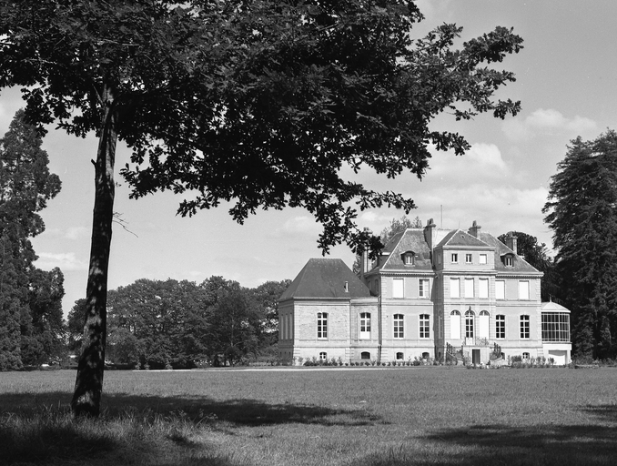 Edifice construit entre 1858 et 1866 par la princesse Bacciochi, nièce de Napoléon Ier, avec son parc au centre d'un domaine de 525 hectares sur lequel est fondée une exploitation agricole moderne ; partie nord rajoutée à la fin du 19e siècle par la famille de Courcy. Le garde-corps de la terrasse faîtière et le belvédère qui la surmontait ont été supprimés. Transformé en aérium pour enfants puis en maison de repos.