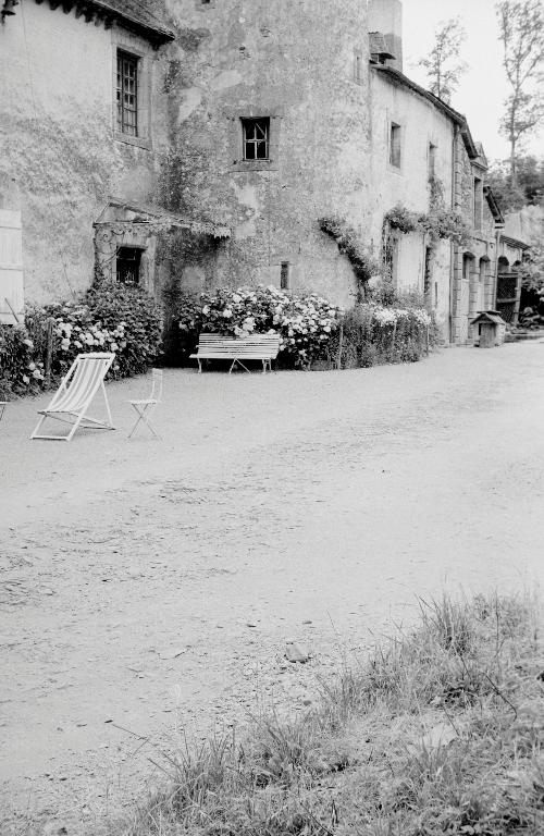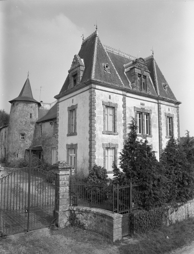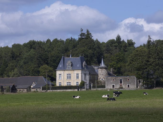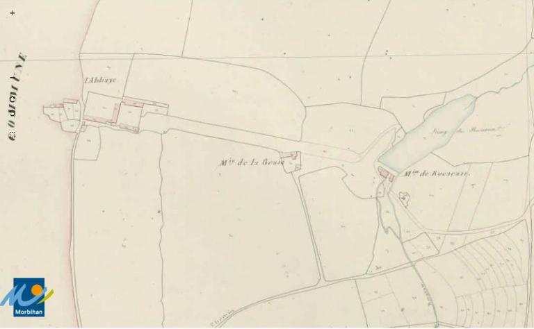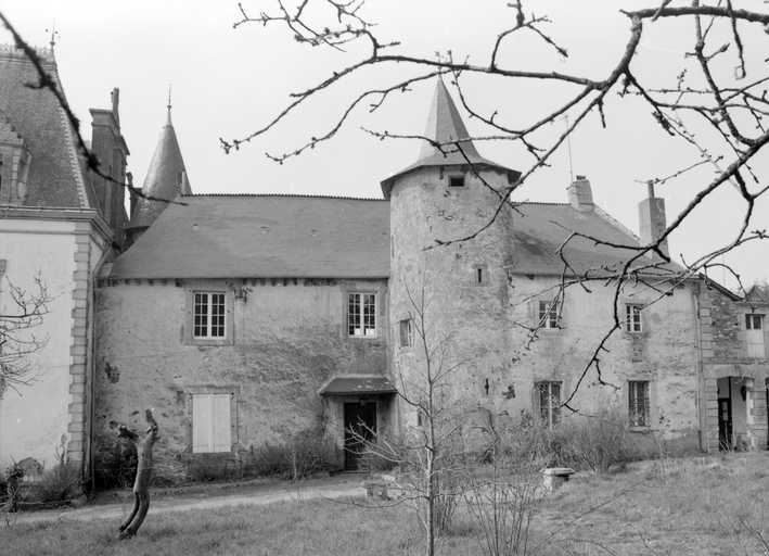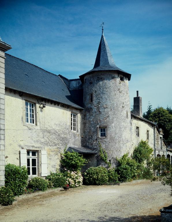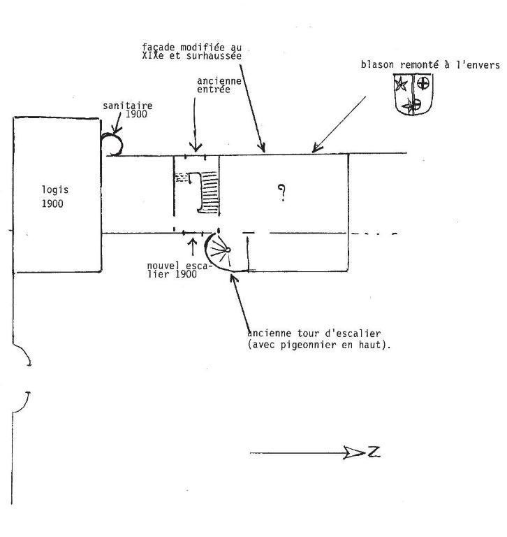 Le nom de l'Abbaye, associé au château de Rocarant, évoque certainement l'époque très ancienne où, en 1060, la paroisse fut concédée à la puissante abbaye de Marmoutier. L'orientation d'un manoir très simple, du 16e siècle, a été inversée : la tour d'escalier visible ici se trouvait à l'origine en façade arrière. Au début de notre siècle, un nouveau corps de logis tourné vers la vallée, fut accolé au mur pignon sud. Le principe du toit polygonal coiffant une tour circulaire semble traditionnel dans le canton ; l'ouverture carrée que protège le coyau est ici l'entrée d'un pigeonnier.