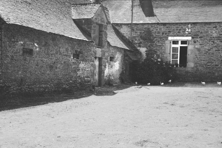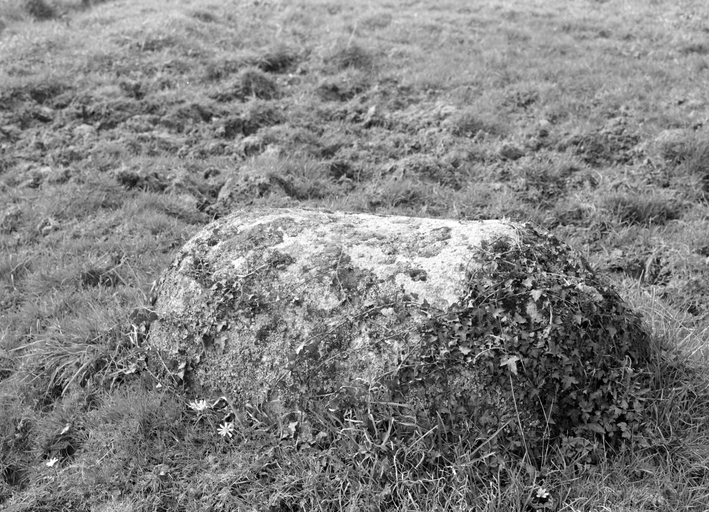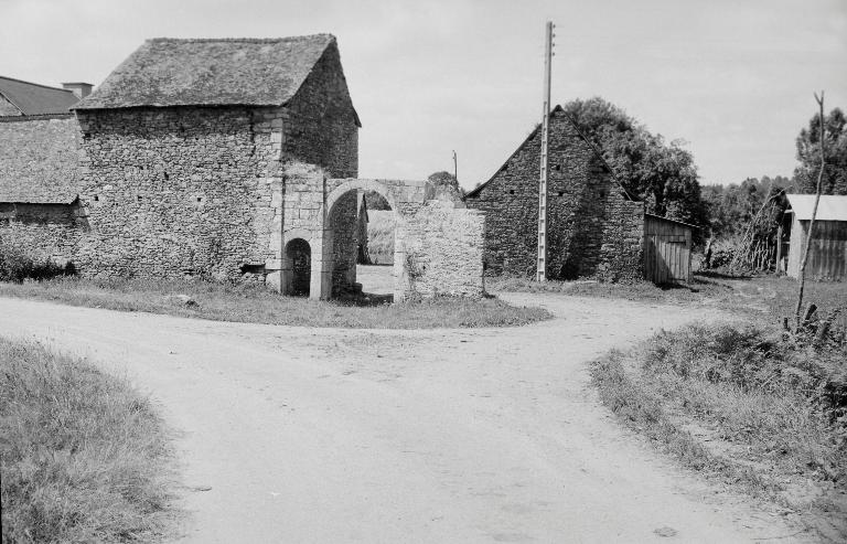 Stèle gauloise ruinée devant le manoir. Le manoir a été construit au 16e siècle ; il n'en reste que des vestiges ; l'actuel logis date du 20e siècle.