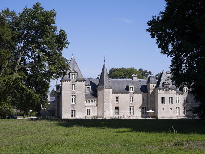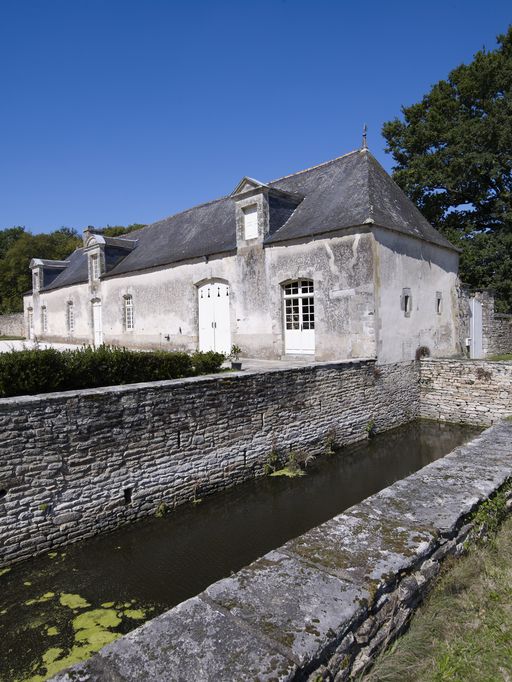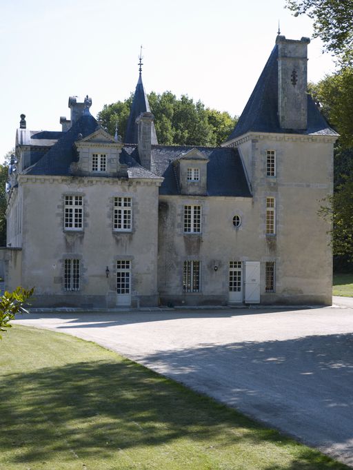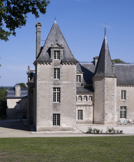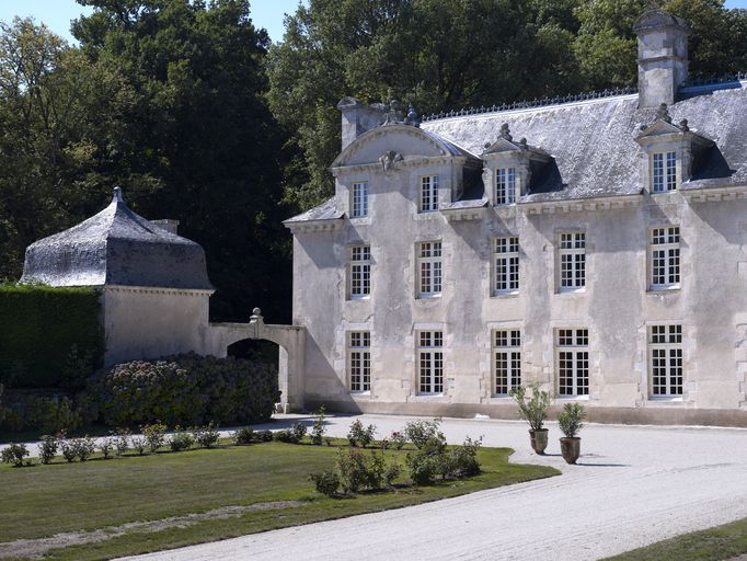 À l'arrière du corps de logis deux escaliers prennent place dans des corps saillants, tandis qu'une aile en retour d'équerre vient agrandir l'édifice à l'ouest.