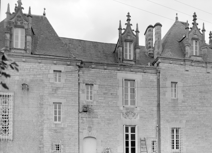 Château du XVIIe siècle transformé pendant la 2e moitié du XIXe siècle par la construction de la chapelle, de la partie gauche du logis et une restauration générale ; le vitrail posé dans la chapelle par Meuret et Lemoine porte la date : 1877 ; la croix monumentale date du XVIe siècle.