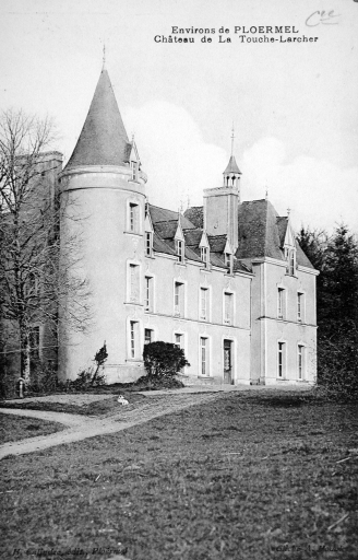 Environs de PLOERMEL. Château de La Touche-Larcher. Carte postale, H. Calindre : éd, Ploërmel, A. Houal, phot. (A. D. Ille-et-Vilaine, 6 Fi)