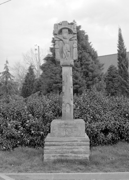 Croix construite en 1806, date portée, sculpture dans le style du 15e siècle : Christ en croix.