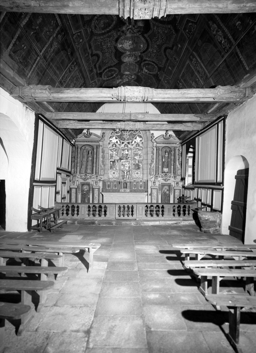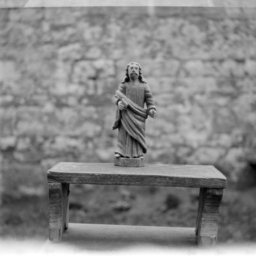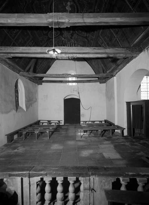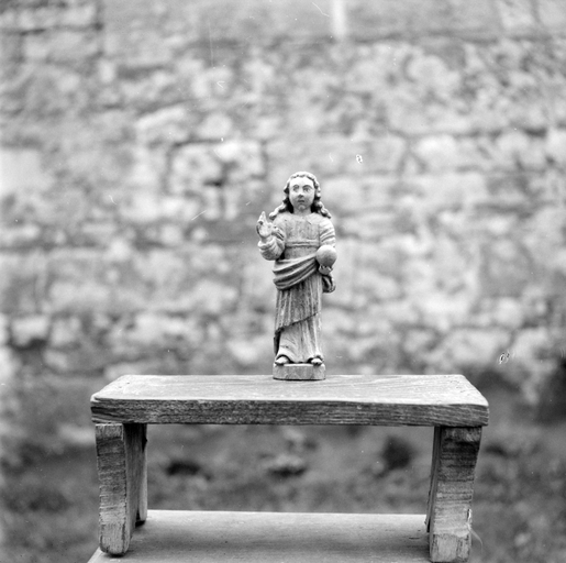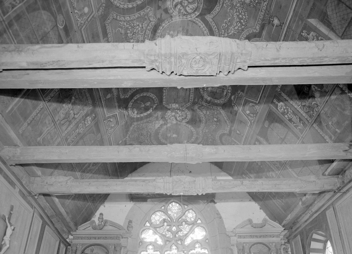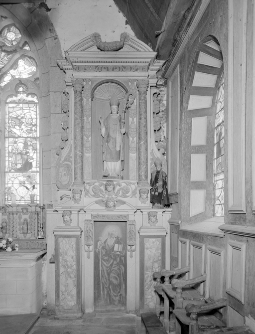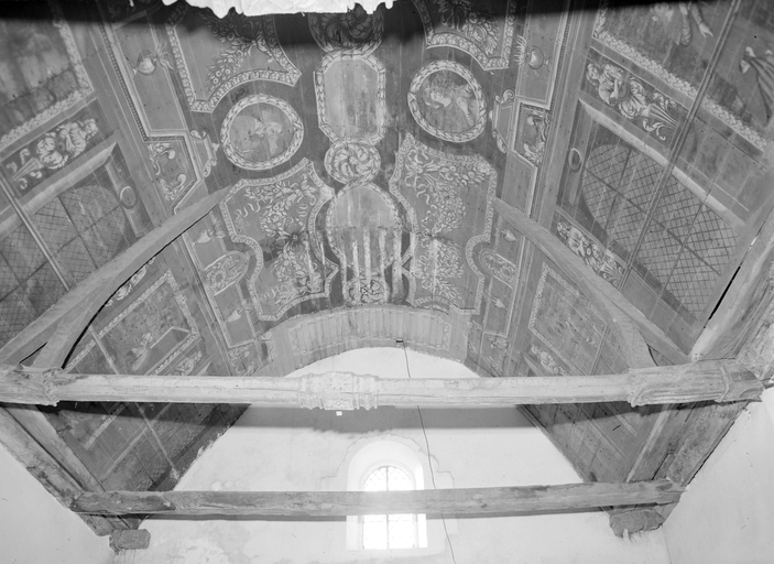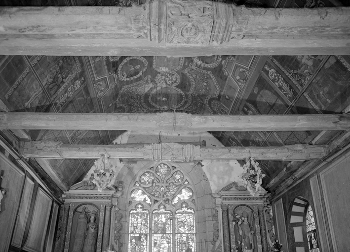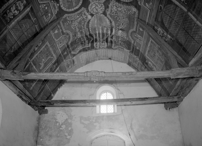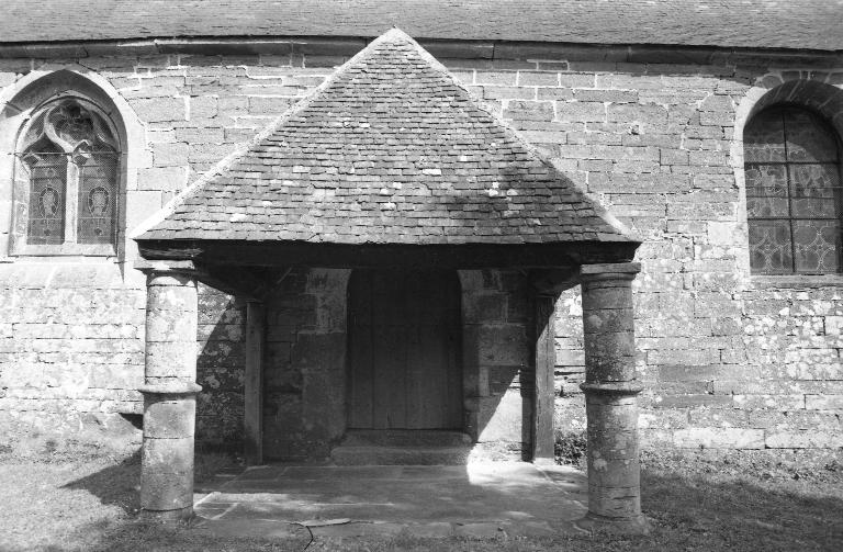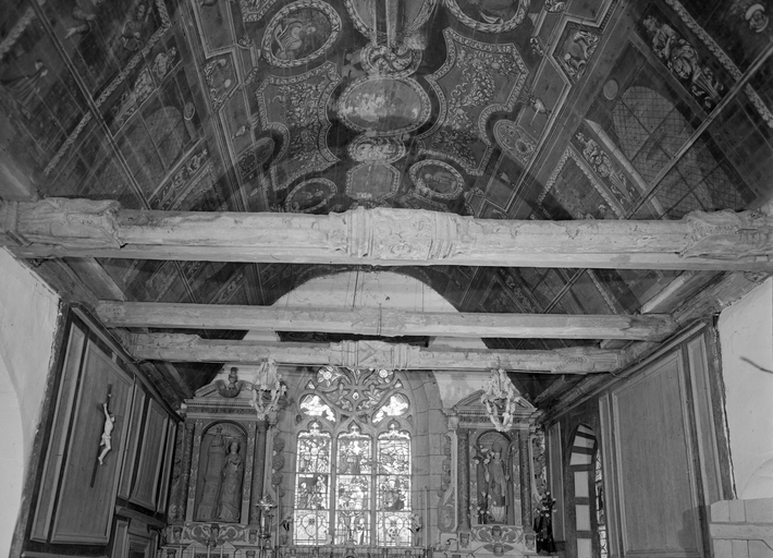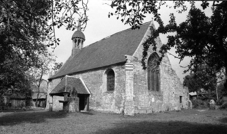 Croix monumentale mutilée, de la 2e moitié du 15e siècle ; vestiges d'une campagne du 16e siècle dont subsistent la fenêtre du chevet et les panneaux de vitraux qui y sont regroupés, la fenêtre ouest du mur sud de la nef et quelques éléments de charpente (entraits) ; importants travaux au 4e quart du 17e siècle : porche et porte sud, fenêtre est du mur sud de la nef, remontage de l'élévation ouest, adjonction de la chapelle nord ; construction de la fontaine : 1601 incertain ; remontage de la croix : date inscrite : 1635.