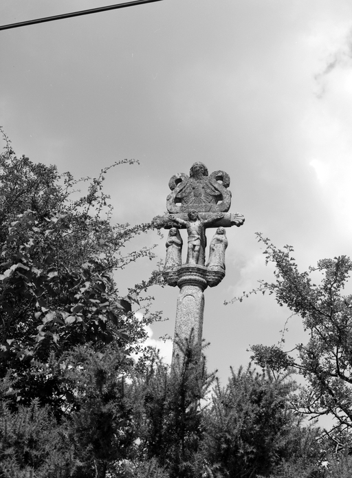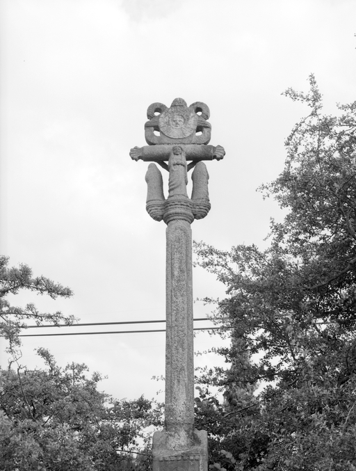 Ouvrage édifié en 1834, remployant peut-être quelques éléments anciens comme le groupe de la Crucifixion (?). L'ouvrage est d'une conception très voisine de celle de la croix du Grand Ménec signée Cabedoche (1835).
