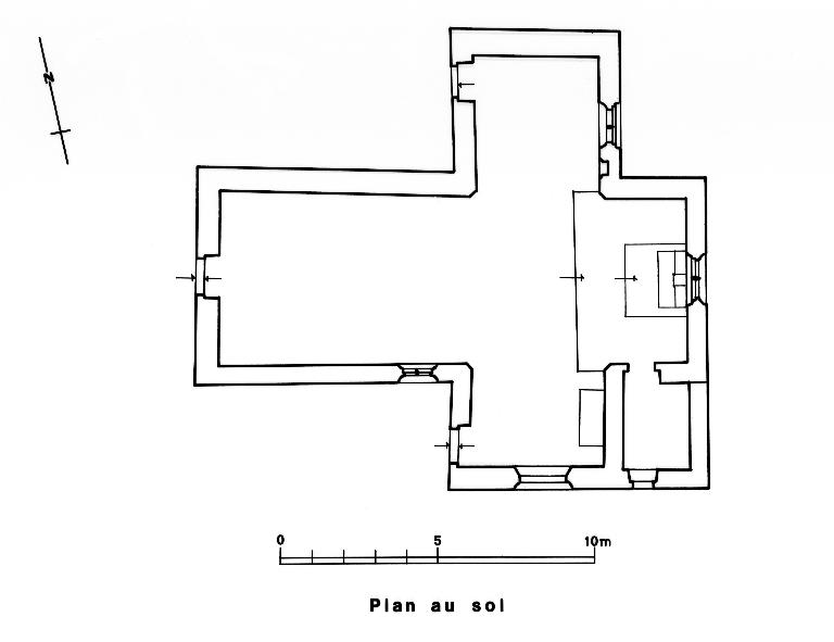 Campagne fin 15e début 16e siècle dont témoignent la fenêtre du chevet et la fenêtre (remaniée ?) du mur sud de la nef. Campagne de travaux en 1704 d'après Rosenzweig (bras sud du transept). Clocher reconstruit en 1920. Remise en état de la partie sud de l'édifice en 1921, présence d'un écu fruste surmonté d'une couronne.