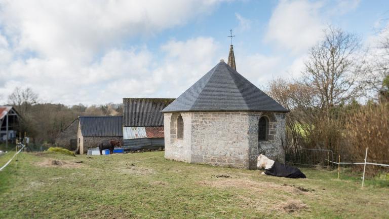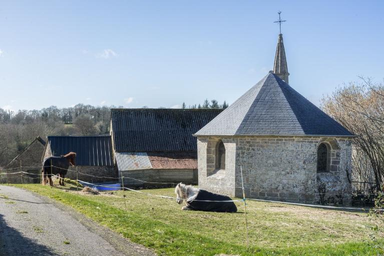 Cette chapelle est construite au cours de la première moitié du XVIIème siècle, si l'on en croit la date portée sur la sablière nord (1630). Le relevé des chapelles et églises en prééminence de la duchesse de Rohan en 1653, mentionne en tout cas l'existence de cet édifice à cette date. Mais l'examen de la maçonnerie permet de distinguer deux phases de construction distinctes puisque le mur de la nef est construit en moellon tandis que celui du chevet à pans coupés l'est en pierre de taille. La corniche et les sablières de la nef s'interrompent en outre à l'emplacement probable du mur de l'ancien chevet qui était droit, comme l'attestent les blochets d'angle encore visibles. L'un deux, sur la sablière sud, semble timbré du demi-blason des Rimaison. Le reconstruction du chevet est difficile à dater mais elle doit intervenir dès le XVIIème siècle ou le XVIIIème siècle au plus tard, d'après la forme des baies fortement ébrasées. Un nouveau retable est alors commandé, intégrant dans ses niches des statues manifestement plus anciennes. Un décrochage notable dans la toiture témoigne d'un autre remaniement, dont la cause et la date restent inconnues.