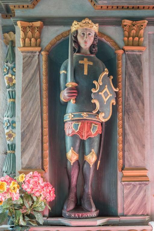 Peu d'édifices sont dédiés à saint Salomon (Salaün), devenu roi de Bretagne en 857 après avoir assassiné Erispoë, son cousin et prédécesseur. En 874, Salomon est lui-même livré aux Francs et exécuté, selon certains auteurs, dans l'église d'un lieu appelé "La Martyre" en souvenir de cet évènement. L'église paroissiale de cette commune porte aujourd'hui encore cette titulature. Une chapelle de Plouyé dans le Finistère est également consacrée à ce saint. Une église Saint-Salomon existait enfin à Vannes, détruite en 1793.