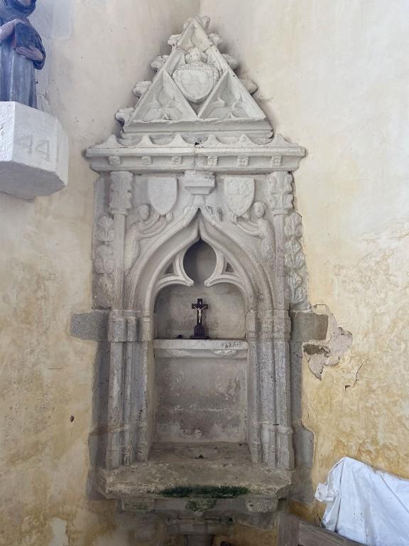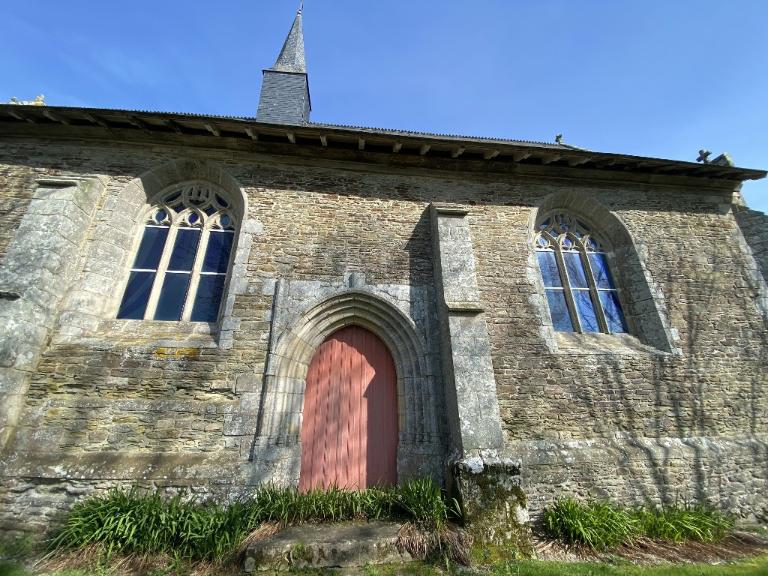La chapelle a été construite à partir des années 1435 à l´initiative du duc de Bretagne Jean V, alerté par les miracles qui se passaient en ce lieu. Le vicomte de Rohan, dont les armes sont figurées à plusieurs reprises dans la chapelle, fut associé à cette fondation, tout comme les Quelen, seigneurs du Broutay. Malgré son illustre patronage, le chantier de la chapelle connut des soubresauts ; des éléments de décor à peine ébauchés indiquent une interruption de la construction, laquelle dut reprendre à la fin du 15e siècle. Le plan à vaisseau unique, couvert en lambris, est régulier et comporte trois accès : un portail ouest à deux portes jumelées et deux portes en vis-à-vis au nord et au sud. On peut trouver, sur le contrefort sud-ouest, des marques de tâcheron. A l'intérieur, deux autels latéraux en pierre, peut-être complétés d´une clôture, séparaient la nef du chœur liturgique. L'élévation occidentale est ajourée d´une belle rose à douze formes trilobées, semblable à celle de l´église de Malestroit. Les rampants à crochets et pierres d´assise saillantes se réfèrent à ce même édifice, ce qui signale très probablement l’œuvre d'un même atelier. Le lambris de couvrement porte l'inscription : " FAIT PAR ROUSIN 1756 JULIEN BOUIC TRE[sorier] ". La sacristie est un ajout de 1777 (date portée), époque à laquelle le culte paroissial s´exerça à Saint-Maudé pendant les travaux de reconstruction de l´église du village. La chapelle a été restaurée en 1993.