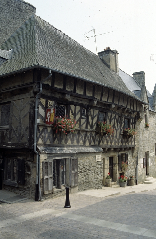 De la cinquantaine de façades en pan de bois recensées en ville, celle-ci est une des plus homogènes. Le rez-de-chaussée est bâti en moellons de schiste vert d'extraction locale. Les parois de l'étage, en encorbellement peu prononcé, conservent le pan de bois d'origine où alternent, séparés de potelets non sculptés, des décharges en croix de Saint-André et en chevron, réussissant ainsi à transformer les contraintes techniques en parti graphique et décoratif. L'édifice porte la date de 1624 et le nom de son commanditaire, 'Lovys Piechel', vraisemblablement un marchand.