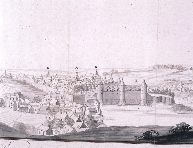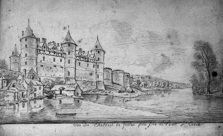 Veuë de la ville et Château de Josselin. Dessin, vers 1750.