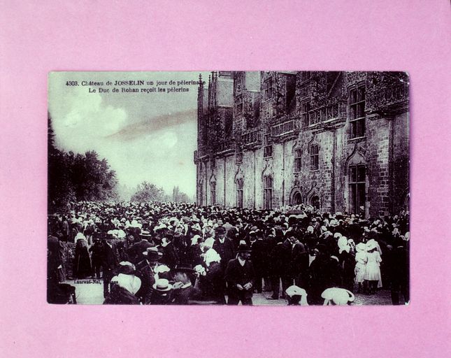 Château de JOSSELIN un jour de pèlerinage. Le Duc de Rohan reçoit les pèlerins. Carte postale, Rennes : Laurent-Nel, édit., [1er quart 20e siècle].