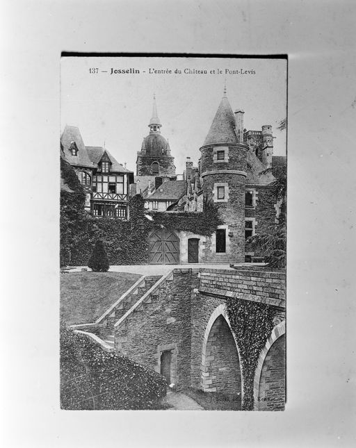 Château de Josselin (Morbihan). Carte postale, Paris : Hachette, édit., Ed. L., phot., [1er quart 20e siècle], d'après une photographie de Mieusement, 1868 (Direction du Patrimoine, Archives photographiques, M. H. 1432).