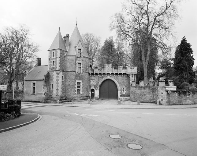 Vestiges de la forteresse de la fin du 12e siècle en schiste et granite à assises alternées ; logement nord en granite pierre de taille ; tours sur la rivière, porterie est et tour isolée en moellon de schiste ; écuries, sellerie et logement en brique et calcaire ; tour isolée à trois étages, logement nord à un étage, logis principal à deux étages de comble.