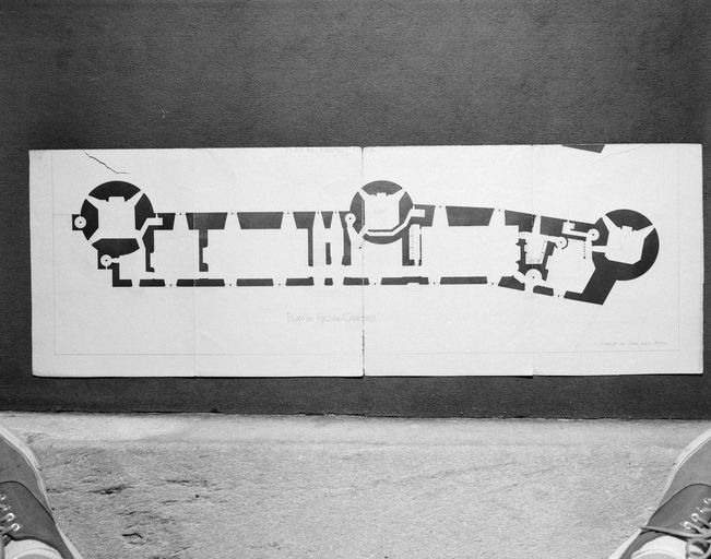 Plan au sol du sous-sol, partie ouest. Par Achille Lafargue ?, architecte, fin 19e siècle.