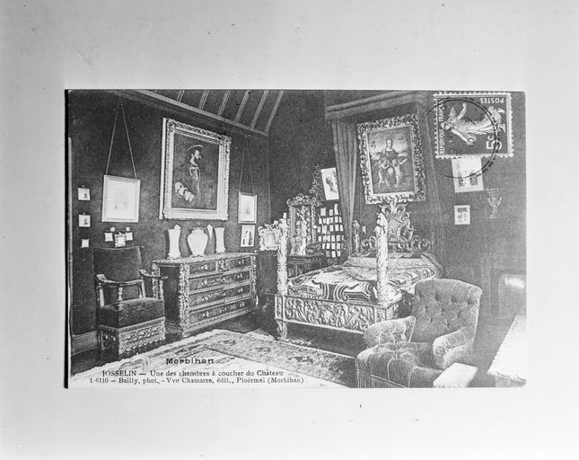 Morbihan. JOSSELIN. - Une des chambres à coucher du château. Carte postale, Ch. Bailly, phot., Ploërmel : Vve Chamarre, édit., [1er quart 20e siècle].
