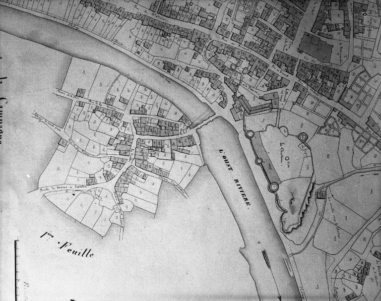 Josselin. Cadastre napoléonien, section B de la Ville. Levée par M. Monoury, géomètre du cadastre, 1832, 1 : 1250e.