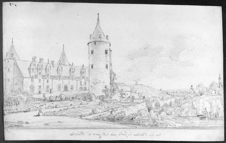 Vue du château de Joslin près de la porte St Nicolas. Dessin, par Louis-François Cassas, 1776.