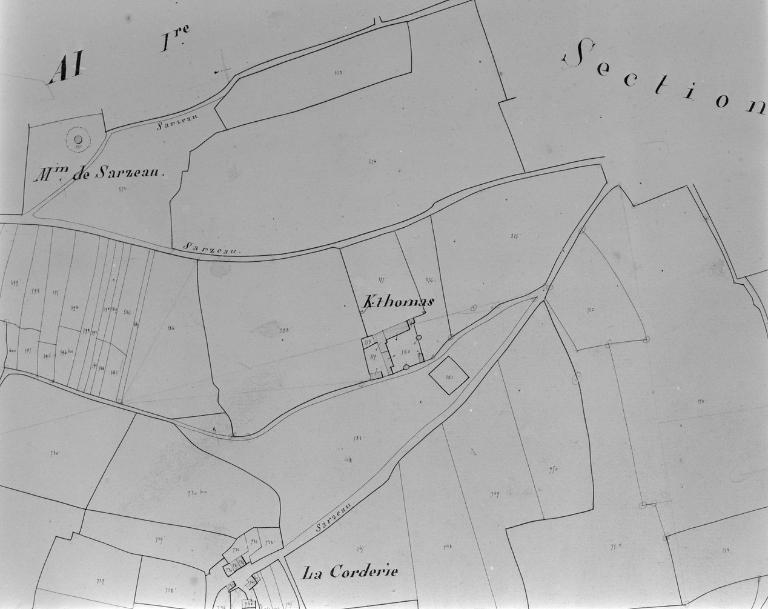 Manoir déclaré maison noble en 1688, attesté en ruine en 1709. Restauré par François Jouchet, acquéreur en 1715 : le cadastre de 1827 montre une forme en équerre avec logis et communs en retours. Acheté en 1857 (?) par Jules de Francheville, il fut restauré et agrandi (ou entièrement reconstruit) de 1855 à 1859 probablement sur des plans de Jacques Mellet, architecte rennais (devis de 1855). Remploi de la fenêtre est du 15e siècle provenant de la chapelle de Kerguet. Ecuries et remise réalisées sur un plan de 1866 de Mayeux, entrepreneur, pour Jules Dumoulin de Paillard. Enclos du jardin, du potager et du verger datant de 1866. Fabrique de jardin datée 1876. Champignonnière fin 19e siècle. Serre fin 19e siècle, ruinée.