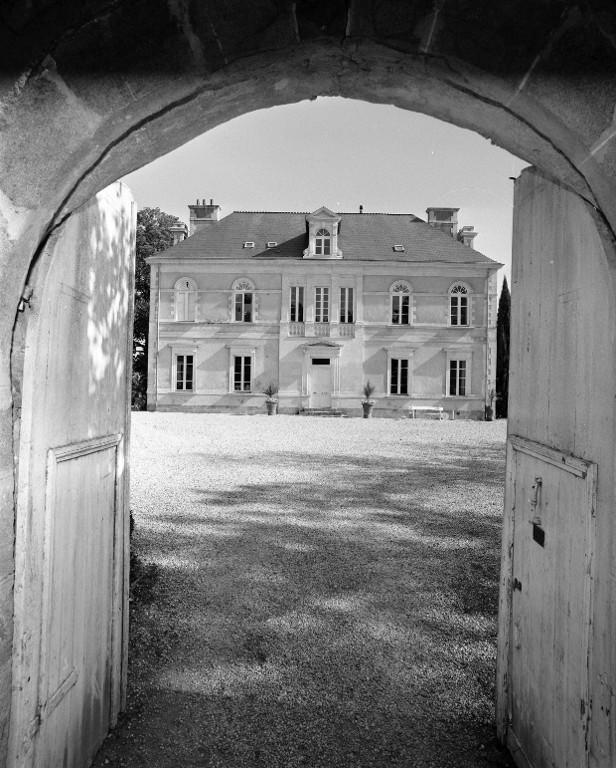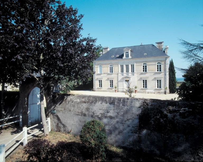 Château en moellon enduit et calcaire (travée centrale, loggia, ouvertures et lucarnes), à 1 étage carré et étage de comble, élévation ordonnancée, toit à longs pans à croupes et noue (lucarnes), escalier dans-oeuvre tournant à retours avec jour en charpente avec rampe en fer forge ; puits en moellon ; dépendance avec logement central et remise à voitures en moellon enduit, ouvertures en brique et calcaire, à comble à surcroît, élévation ordonnancée, toit à longs pans à pignon couvert, avant corps avec toit à noue.