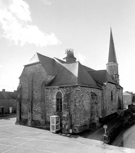L'église priorale dépendait de l'abbaye Saint-Méen. La nef, le choeur et le bras nord remontent à la période romane. La chapelle sud des seigneurs de la Chesnais a été reprise au 15e siècle, la chapelle nord au 17e siècle. Du 17e siècle date également la sacristie. La façade ouest a été entièrement construite par l'architecte Aristide Tourneux entre 1865 et 1870 (attribution et dates par source) .