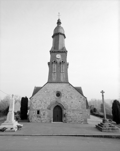 Vestiges d'un édifice de la 1ère moitié du 15e siècle dans la partie occidentale de la nef (occulus de la façade occidentale refait) . Le porche sud de la seconde moitié du 15e siècle et du 16e siècle conserve des sablières sculptées avec décor funèbre. Le choeur porte la date 1554. Le bras nord du transept a été construit en 1660 et porte l'inscription : VENER. ET DISC. D. GUILL. CROSNIER RECTOR. HOC SACELUM SUIS SUMPT. EGIT. ANN. DOM. 1660. Le bras sud du transept a été construit en 1781 pour Paul Clairay, recteur. Le jubé est détruit en 1781. Des fragments de vitraux, portant la date 1555 et attribués au peintre verrier vitréen Guillaume Collin, sont remontés dans la fenêtre sud du choeur.
