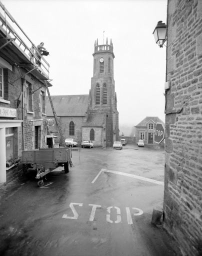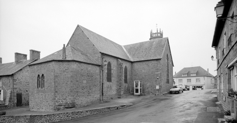 L'ancienne église appartenait dès le 12e siècle à l'abbaye Saint-Pierre-de-Rillé, qui y fonda un prieuré. Elle se composait d'une seule nef, à laquelle on avait ajouté vers 1733, deux chapelles formant la croix. Entre 1848 et 1852, Julien Rouxel et Jean Leduc (tailleurs de pierre), construisirent la tour du clocher suivant les plans de Charles Langlois. La nef le transept et le choeur furent construits de 1867 à 1869 par Jourdin entrepreneur (travaux financés par le recteur Brisebarbe des Jardins) . Restauration de la tour en 1892-1893 sous la direction d'Arthur Regnault, par Huchet entrepreneur. Vitraux de l'atelier Rault.