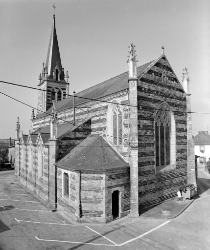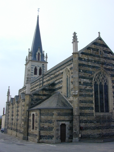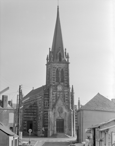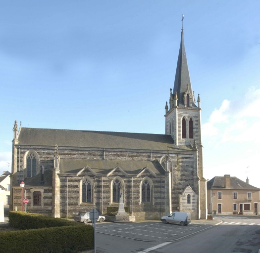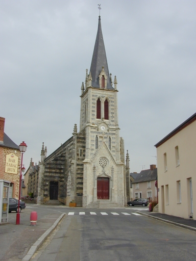 L'église paroissiale Saint-Germain fut construite entre 1865 et 1870 par l'entrepreneur vitréen Pierre Gandon sur les plans de l'architecte Charles Langlois. Elle remplace une ancienne église priorale dépendant de l'abbaye de la Roë. Il ne reste rien de cet édifice qui fut rasé. Il conservait des vestiges de la période romane dans le mur nord de la nef mais elle datait principalement du 16e siècle (époque de sa reconstruction). Il possédait deux chapelles : la chapelle sud était datée 1559, la chapelle nord 1625. Son appareil à assises alternées de schiste noir et de grès gris est unique dans la commune.