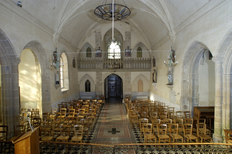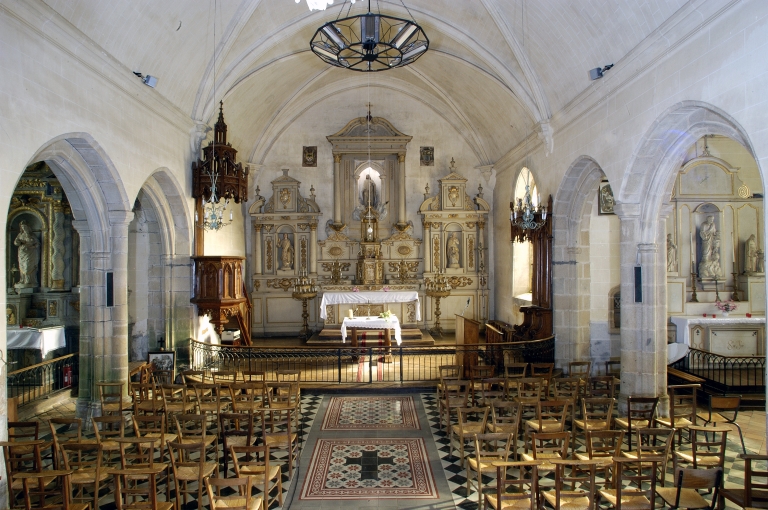 L'église comprend un vaste porche ouvert sur trois côtés à double arcade à l'ouest. La nef unique est terminée par un chevet droit. Une chapelle au nord forme un volume saillant. Le clocher reconstruit postérieurement est situé en bas de nef. Cimetière conservé, avec vestiges d'un ancien calvaire protégé au titre des Monuments Historiques. Style ogival.