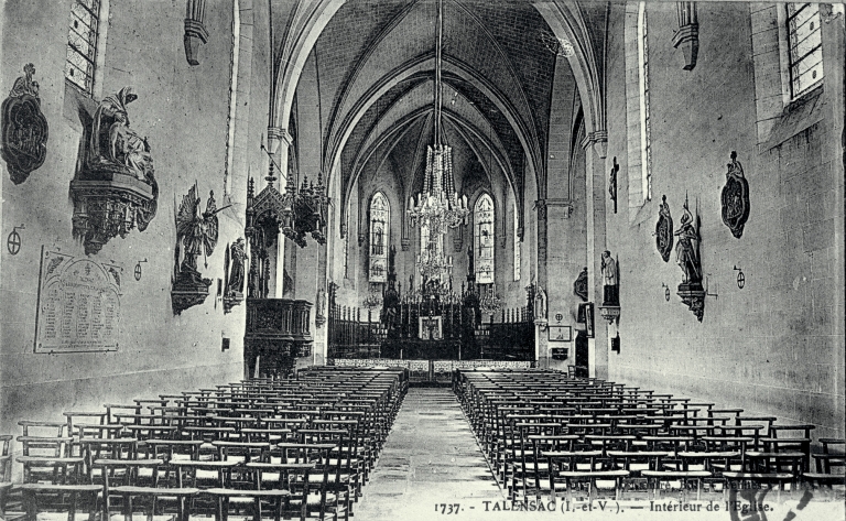 1737 - TALENSAC (I.-et-V.). Intérieur de l'église, carte postale, A. Lamiré, éditeur, Rennes. (A.D. Ille-et-Vilaine : 6Fi).