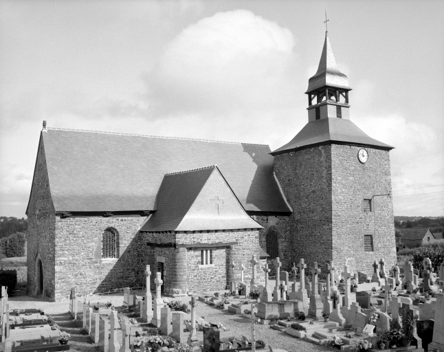Ancien prieuré-cure de l´abbaye Saint-Jacques de Montfort, l´église aurait été dédiée, jusqu´au 18e siècle, au saint gallois Gundlee. L´édifice fondé au 13e siècle a été agrandi et reconstruit. La chapelle seigneuriale, au Nord porte la date de 1537 sur une sablière également sculptée d´inscriptions gothiques. Une trésorerie y est accolée au 17e siècle. La nef relevée dans la première moitié du 16e siècle, a été remaniée au cours du17e siècle, sans doute au moment de la reconstruction du chœur en 1670, et au début du 18e siècle (la grande fenêtre sud est datée 1719). La tour est, elle aussi, construite au 17e siècle, comme le porche Sud qui abritait, dans sa partie supérieure, un ossuaire ou une salle des archives. En 1890, l´église est dans un mauvais état, un projet de restauration est élaboré par Arthur Regnault. En 1893, une subvention est accordée. L´entrepreneur Huchet procède à la réfection de la toiture, du pignon occidental et des portes extérieures. La décoration des tirants, des sablières et des autels est confiée à Goudrieux et le douvelis de bois est remplacé par le charpentier Argentais.