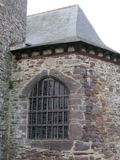 L´église qui conserve son cimetière, offre une silhouette très caractéristique de la 2e moitié du 17e siècle avec sa tour massive et son chœur à pans coupés. Malgré les agrandissements successifs, on distingue la structure initiale, composée de deux volumes distincts de la nef et du chœur, sur laquelle se greffent une tour et un porche, au Sud, une chapelle et une trésorerie, au Nord. A noter, en extérieur les bas –reliefs sculptés autour de la fenêtre sud de la nef qui pourraient évoquer Saint-Yves et le pauvre. A l´intérieur, un arc diaphragme isole encore la nef du reste de l´église ; il rappelle le fonctionnement primitif d´un espace très fractionné, typique de la liturgie médiévale. La chapelle seigneuriale placée au Nord selon une habitude courante, occupe une position privilégiée par rapport au chœur ; elle est munie d´un accès direct qui permet un mode de circulation distinct de celui des autres paroissiens.