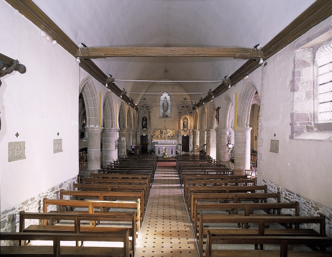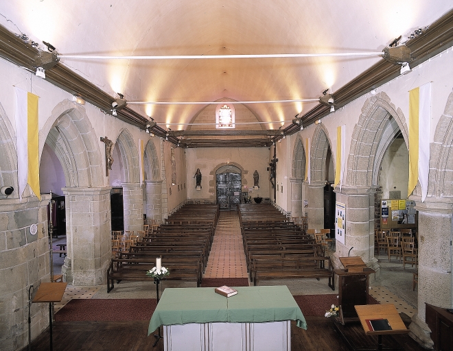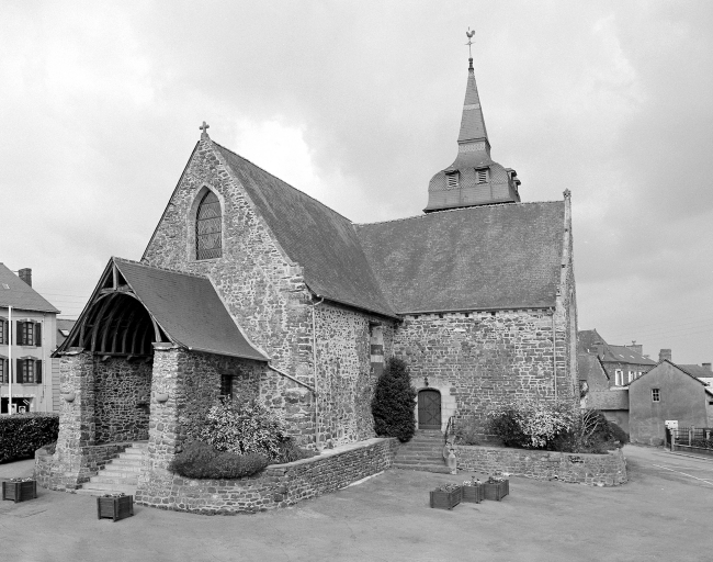 L´étude archéologique de l´édifice rend compte de plusieurs périodes de construction. Des vestiges de baies anciennes sont datables du 15e siècle comme celle de la chapelle nord de la Touche-Louvel. L´église est reconstruite et surélevée dans la première moitié du 16e siècle. Une inscription aujourd´hui disparue nous dévoilait les noms du charpentier Alain Bigot et du trésorier Allain Pichon. Le clocher date de 1742 comme en témoigne encore une pierre, scellée à la base du clocher, sur laquelle on trouve l'inscription suivante : "par Mre Joseph Bigot, recteur 1742". De 1876 à 1878, l'église connaît de nouvelles transformations sous la direction de l´architecte Aristide Folie. Ainsi, une nouvelle sacristie est construite dans le prolongement du chœur et un nouveau bas-côté au nord de celui-ci. C´est à cette période que le retable majeur fut transformé, les poutres remplacées par des tirants métalliques. Lors de ces travaux, un certain nombre de tombes du cimetière sont également enlevées. Le nom des personnes qui reposaient à cet endroit est aujourd'hui indiqué sur une plaque située contre le mur extérieur est de l'église. Des travaux récents de rénovation intérieure ont eu lieu en 1963 : les panneaux de la chaire a prêcher du 18e siècle ont été démontés et remployés pour le nouvel autel.