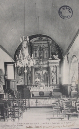 SAINT-GERMAIN-SUR-ILLE (I.-et-V.). Intérieur de Église. Carte postale éditée par Sorel J., éditeur, Rennes [s. d.] (A.D. Ille-et-Vilaine 6 Fi).