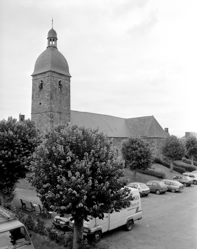 Vestiges d'un édifice gothique dans le choeur et dans la nef qui présente une porte du 15e siècle dans son mur sud. Le clocher-porche est construit en 1788 avec l'inscription : BTIE PAR LES SOINS DE MR BIGOT RR DE TRANS. Le bras du transept est édifié en 1824 (date portée) . Les baies sud de la nef sont reprises en 1847. La sacristie d'axe de 1910 réemploi une inscription datée 1686.