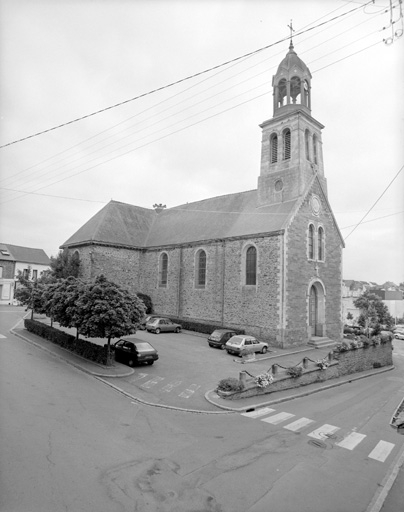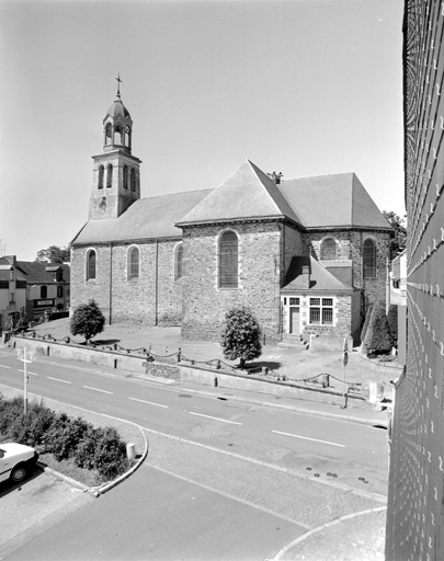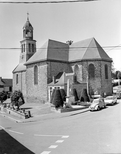L'ancienne église priorale de bénédictins dépendant de l´abbaye Saint-Melaine de Rennes avait été fondée avant 1152. Une nouvelle église fut édifiée au 17e siècle (date 1646 sur une sablière de la nef), puis de nouveau au 19e siècle. Le choeur et le transept ont été reconstruits en 1834 sur les plans de l´architecte Leroux. Le mur nord de la nef et la tour sont reconstruits entre 1850 et 1857 sur les plans de l´architecte Hugue. Clocher restauré après l´incendie de 1911.