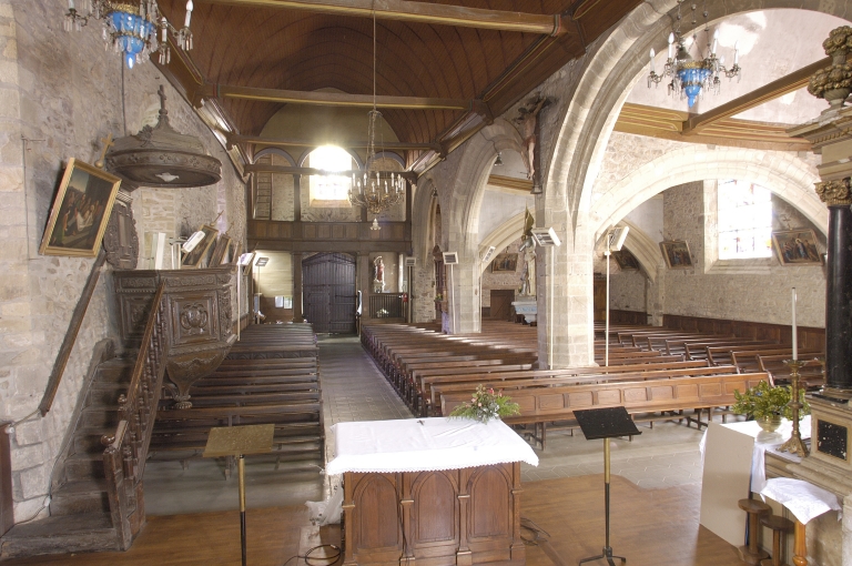 L´église paroissiale dédiée à saint Pierre a été construite en plusieurs campagnes. Des vestiges de la période romane sont encore visibles dans le mur sud de la nef. Le chœur plus élevé à chevet droit est reconstruit au 16e siècle, il est daté par travaux historiques de 1537. La façade ouest fut refaite également en 1543. Sa porte renaissance a perdu son fronton mais les colonnes et le décor sculpté demeurent encore en place. Un personnage sculpté en demi-relief au-dessus de la porte a été identifié par ses initiales OBR, Olivier Binesse, recteur de la paroisse à cette époque. Le collatéral nord présente quant à lui une succession de pignons élevés vers 1655 . L'élévation occidentale a été transformée par l'ajout d'un clocher en 1828-1829 comme le souligne l'inscription portée. A signaler également le mobilier intérieur.
