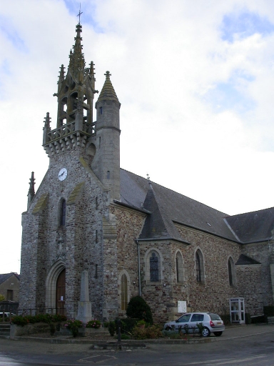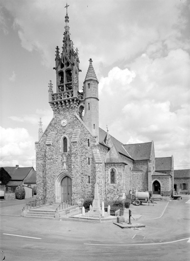 L´église primitive fut donnée à la fin du 11e siècle à l'abbaye Saint-Aubin d'Angers par un seigneur nommé Auvé. Des chapelles nord et sud y avaient été ajoutées au 16e siècle. L'église romane était auparavant composée d'une nef unique terminée par une abside semi-circulaire. A l'extérieur de l'édifice, il existait plusieurs contreforts. La porte ouest était protégée par un chapitreau, sous lequel se trouvait un bénitier, actuellement conservé dans la nouvelle église. L'église actuelle inspirée du gothique flamboyant régional a été reconstruite sur les plans d'Arthur Regnault entre 1891 et 1893. Des remplois de poudingue de l´ancien édifice y sont perceptibles. Le clocher de type cornouaillais se retrouve dans la production de cet architecte. (Voir également les églises de Thorigné et d´Epiniac).