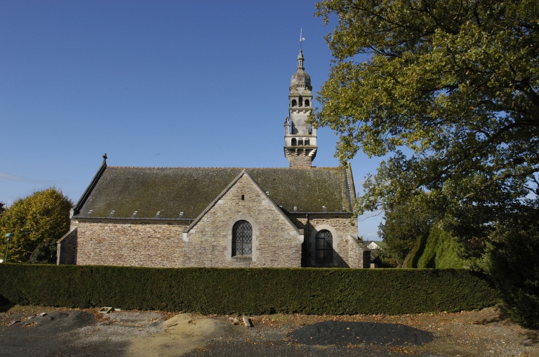 De l' édifice des 16e et 17e siècles sont conservés l' arc diaphragme, les arcades de la croisée et la charpente couvrant la nef. D' importants travaux réalisés en 1904 par Arthur Regnault entraînent la simplification des formes des chapelles du transept et du choeur (passage de plan polygonal au plan rectangulaire), le voûtement du choeur, la reconstruction de la façade occidentale et le déplacement du clocher vers le nord-est. Le nouveau clocher en maçonnerie s' inspire de celui de Notre-Dame de Croas Batz à Roscoff.