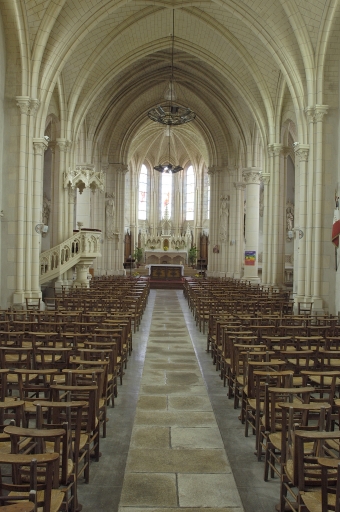 Église donnée à l´abbaye de Marmoutiers au début du 12e siècle. Reconstruite aux 16e et 17e siècles, puis détruite pour faire place à l´église Saint-Martin actuelle édifiée sur les plans d' Arthur Regnault entre 1880 et 1885. Tympan sculpté en 1889 par Resnays, représentant saint Martin à cheval. Statues du porche réalisées par Costard en 1882. Vitraux du choeur et de la nef signés et datés : E.DIDRON 1883.