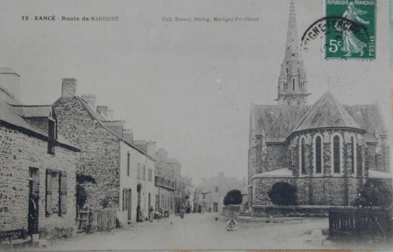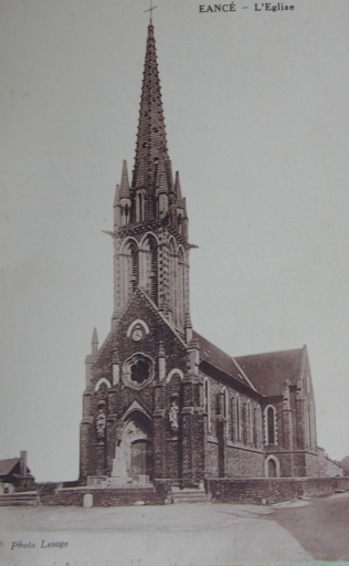 Eancé (I.-et-V.). L'église. Carte postale, Martigné-Ferchaud : Brunet, Horlog., 1904. (Coll. part.).