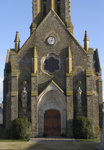Pour cette petite église rurale, le style gothique du 13e siècle est imposé à l'architecte qui adopte un plan en croix latine et une abside à pans coupés et deux sacristies. Pour obtenir des proportions intérieures satisfaisantes avec le moins de dépense possible. A. Regnault a recours à différentes astuces. Il lace le clocher dans œuvre derrrière le mur pignon et réduit la portée des arcs doubleaux en les recevant sur des contreforts intérieurs, procédé maintes fois repris. Enfin, pour améliorer la perspective de cet édifice à vaisseau unique, il valorise l'espace du chœur en lui donnant une forme allongée et en plaçant, à l'entrée, un arc triomphal en pierre de Caen.