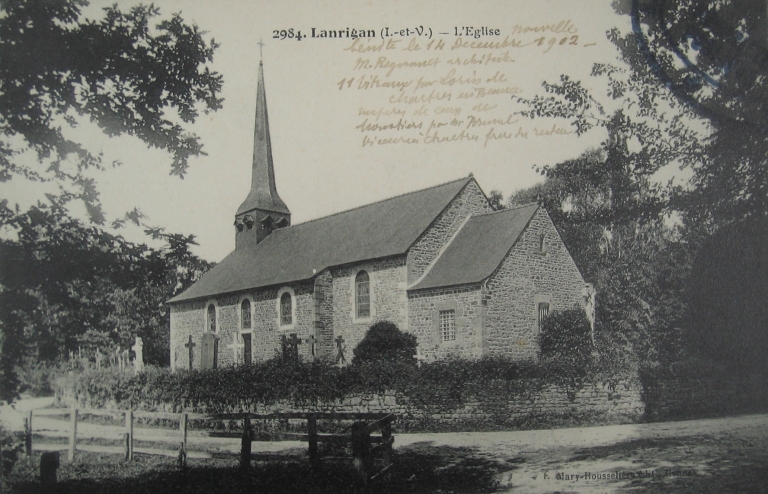 2984. LANRIGAN (I.-et-V.) - l'Eglise, carte postale, E. Mary-Rousselière édit, Rennes, [s.d.] (A.D. Illet-et-Vilaine : 6 Fi Lanrigan).