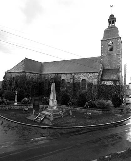 Clocher-porche élevé en 1789 (daté par travaux historiques) . Reconstruction de la nef et du choeur par l' architecte Jean-Gabriel Frangeul entre 1832 (pose de la premiere pierre) et 1833 (date de la bénédiction) . Nef de nouveau reprise en 1887 (daté par source) puis récemment le couvrement . Vitraux signés MEGNEN CLAMENS ET BORDEREAU, ANGERS.
