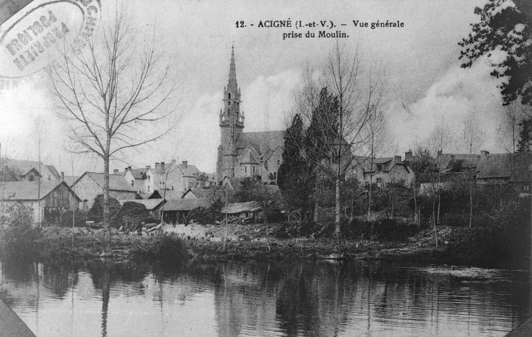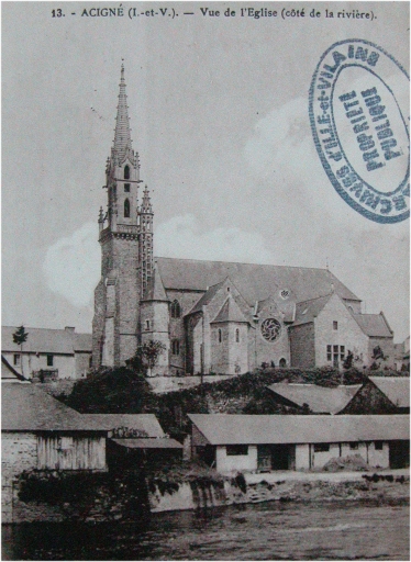 13. ACIGNE (I.-et-V.) Vue de l'Eglise (côté de la rivière) . Carte postale, [s.d.] (A.D. Ille-et-Vilaine : 6 Fi).