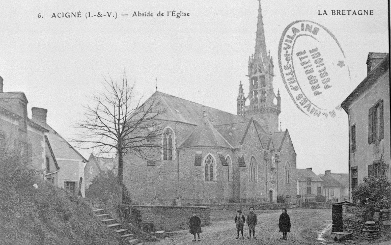 LA BRETAGNE. 6. ACIGNE (I.-et-V.) Abside de l'Eglise. Carte postale, [s.l.] : E.L.D., [s.d.]. (A.D. Ille-et-Vilaine : 6 Fi).