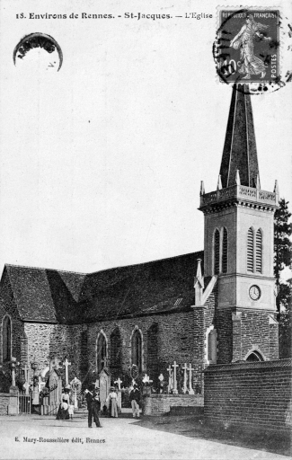 Environs de Rennes. St-Jacques. L'Eglise. Carte postale éditée par E. Mary-Rousselière, édit., Rennes, [s. d.] (A.D. Ille-et-Vilaine 6 Fi).