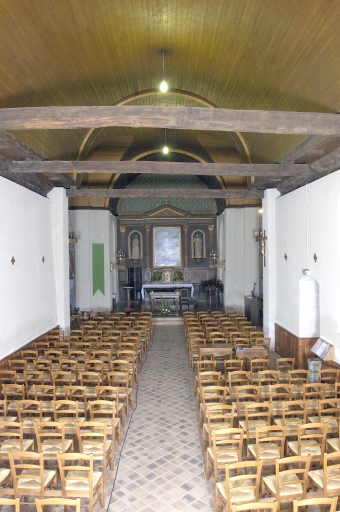 Plan en croix latine, lambris de couvrement, clocher en façade, chevet plat.